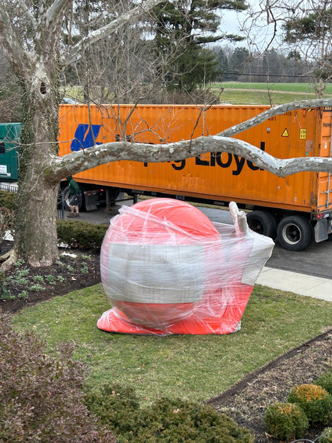 Three larger-than-life snails started out by adorning the front lawn of the Dublin Arts Council building located at 7125 Riverside Drive, Dublin, OH, USA. The artworks traveled from Milan, Italy where they were created by a group of six Italian-based artists known as Cracking Art. Formed in 1993, Cracking Art Group upholds a solid commitment to investigating social and environmental issues through the conception and creation of art.